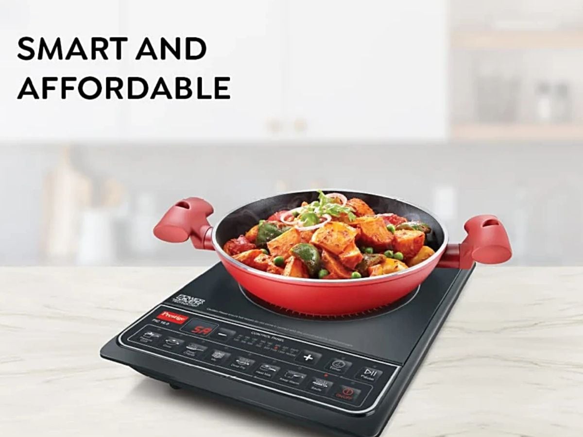 The Prestige PIC 20 Induction Cooktop comes with 1600 W power and push button controls for easy operation. It features an automatic whistle counter and Indian menu options for convenient cooking. Price: Rs 2,899.