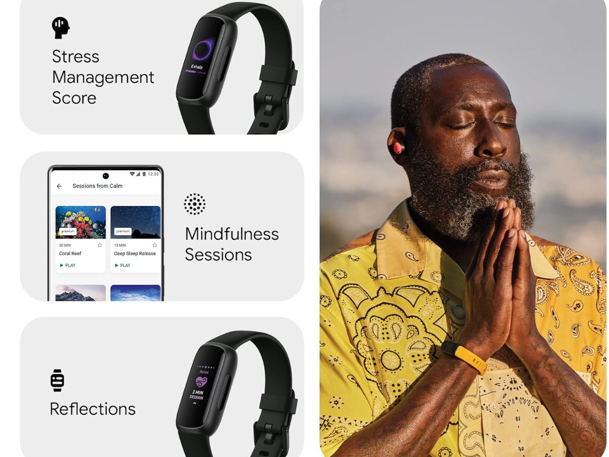 The Fitbit Inspire 3 Health & Fitness Tracker (Midnight Zen/Black) comes with a 6-month premium membership. It offers always-on wellness tracking, stress management score, daily readiness score and sleep profile (premium only), and blood oxygen (SpO2) monitoring. It supports call, text, and app notifications when the phone is nearby. The battery lasts up to 10 days, depending on usage. The price is Rs 8,499.