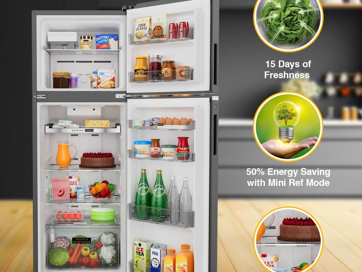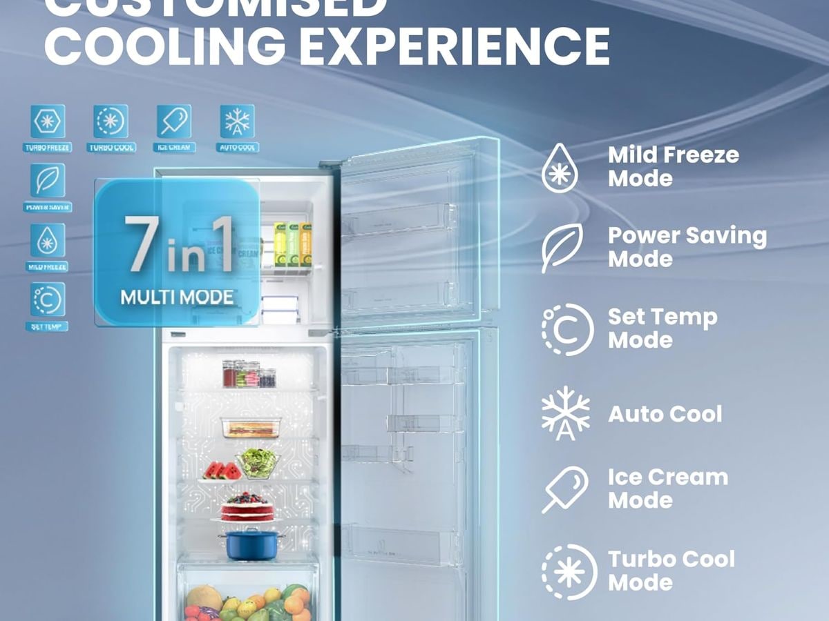 IFB 285L is available at 33,990. It comes with 2 Star Frost Free Double Door Refrigerator with Advanced Inverter Compressor, 7 in1 Multi Modes, Scratch Resistant Premium Glass Door