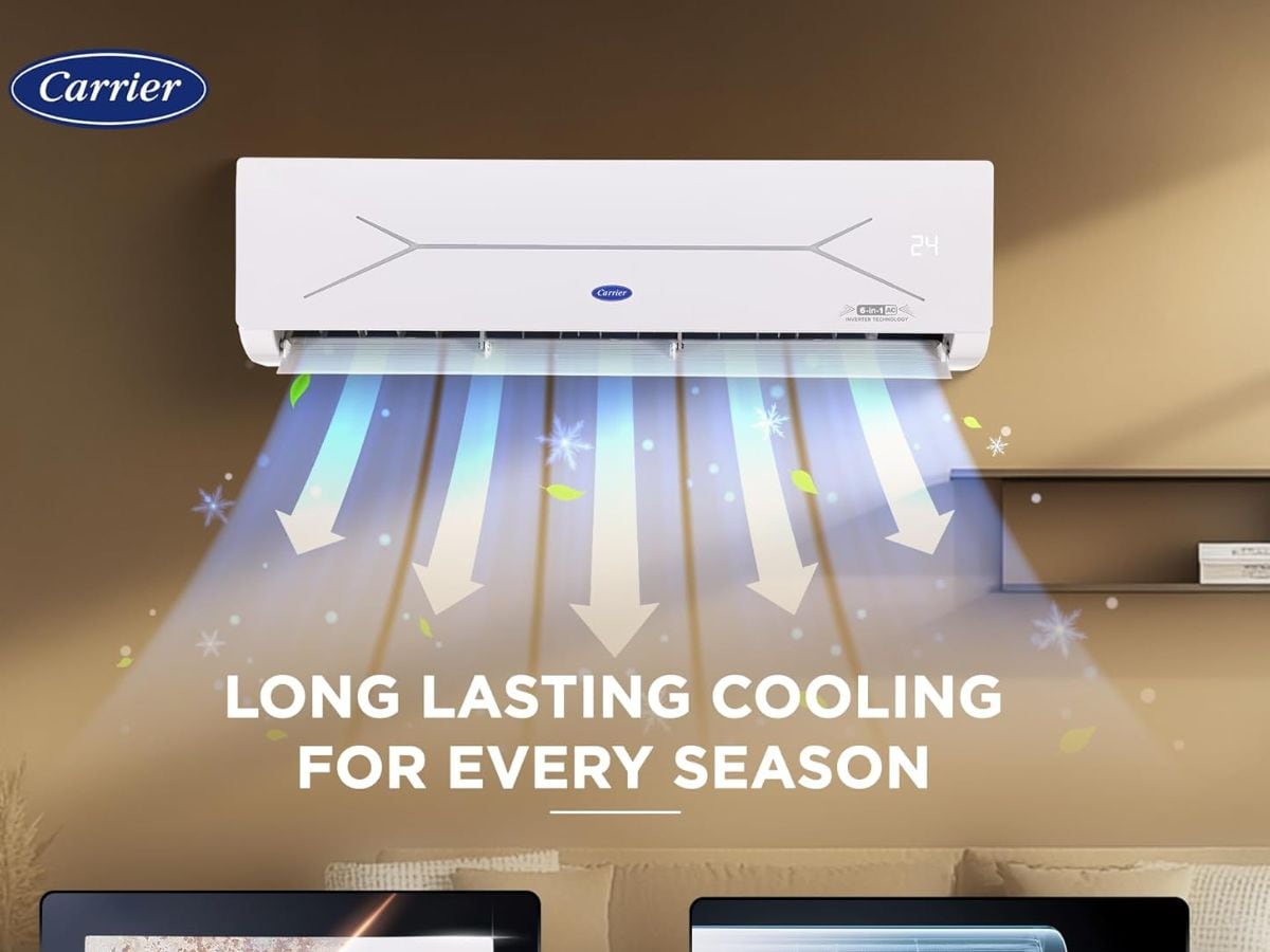 Carrier 1.5 Ton 5 Star Wi Fi Smart Flexicool Inverter Split AC comes with 1.5 ton cooling capacity and 5 star energy rating. It supports 6 in 1 Flexicool convertible cooling. The AC has Wi Fi control and smart energy display. It also includes HD filter and PM 2.5 filter for clean air. The price of this air conditioner is Rs 38,200.