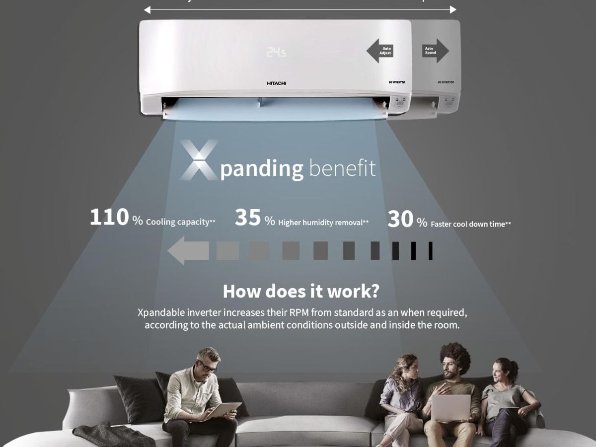 Hitachi 1 Ton 5 Star Xpandable+ Inverter Split AC comes with 1 ton cooling capacity and 5 star energy rating. It has 100 percent copper condenser for better cooling and durability. The AC includes 4 way swing airflow ice clean feature and dust filter. The price of this air conditioner is Rs 34,999.