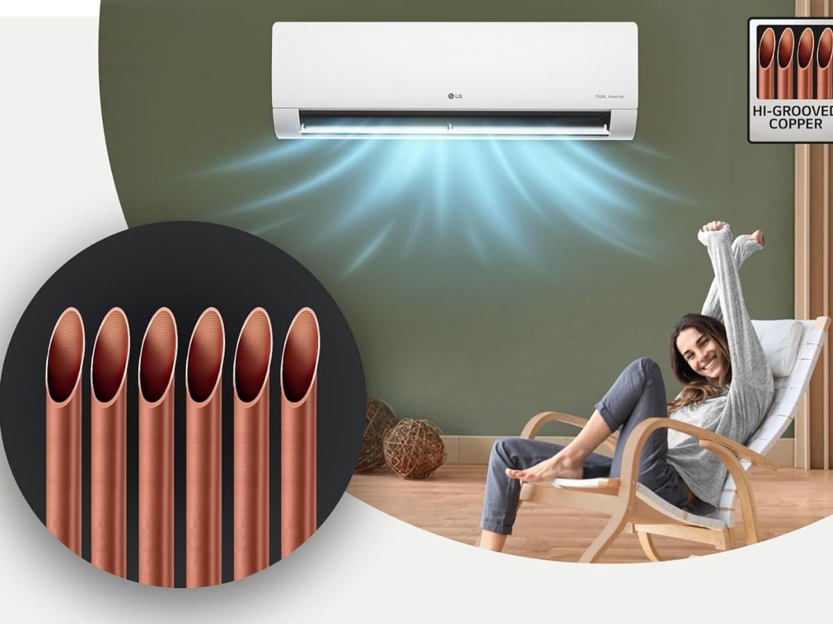 LG 1 Ton 5 Star Dual Inverter Split AC comes with 1 ton cooling capacity and 5 star energy rating. It supports AI convertible 6 in 1 cooling with VIRAAT mode for fast cooling and energy saving. The AC has 4 way swing and copper condenser for long use. It also includes HD filter with anti virus protection. The price of this air conditioner is Rs 36,290.
