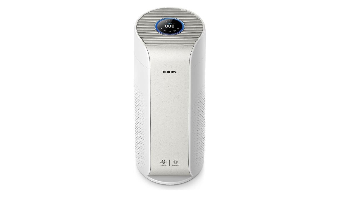 PHILIPS Air Purifier AC3055/60, Wi-Fi Enabled, Numerical PM2.5 Display, 3 Layer Filtration, True HEPA Filter, Ideal For Living Room, White, Medium. Vitashield Intelligent Auto Purification: Removes 99.9 percent airborne pollutants as small as 0.003 microns, 800 times smaller than PM2.5 particles. Automatically scans pollutants in air 60,000 times per minute to filter out dust mites, pollen, pet dander, viruses, bacteria etc. in real time. Can be used for rooms up to 43 sq meter (416 sq. ft.) in size. Smart filter status & air quality in one glance: Numerical PM2.5, gases and allergen levels display & ambient light ring indicator. Smart filter indicator detects actual pollutants filtered and calculates filter lifetime.