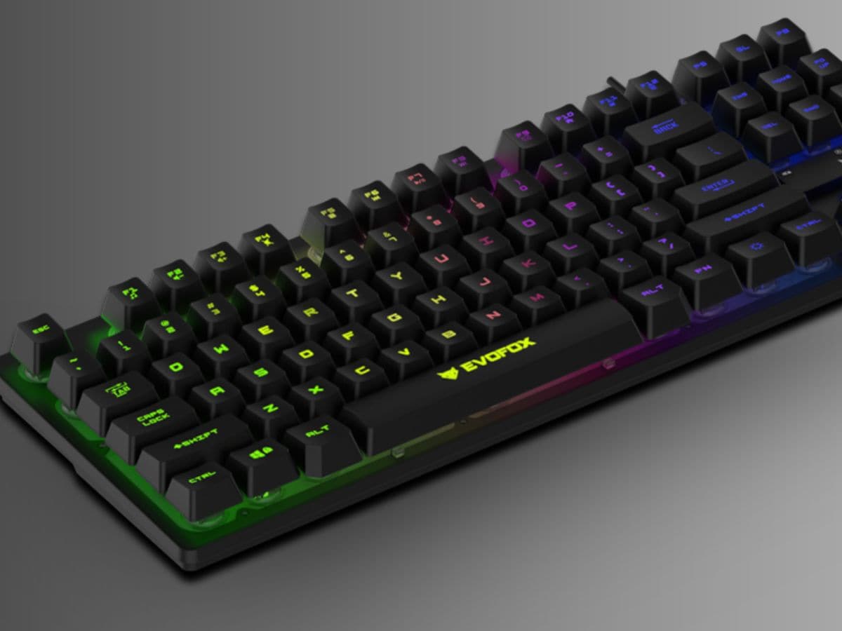 The EvoFox Fireblade is a TKL semi-mechanical gaming keyboard with rainbow backlighting and a breathing effect. It features floating keycaps, 19 anti-ghosting keys, and 12 multimedia keys. The keyboard includes a Windows lock key and comes with a braided cable. The color is black. The price is Rs 899.