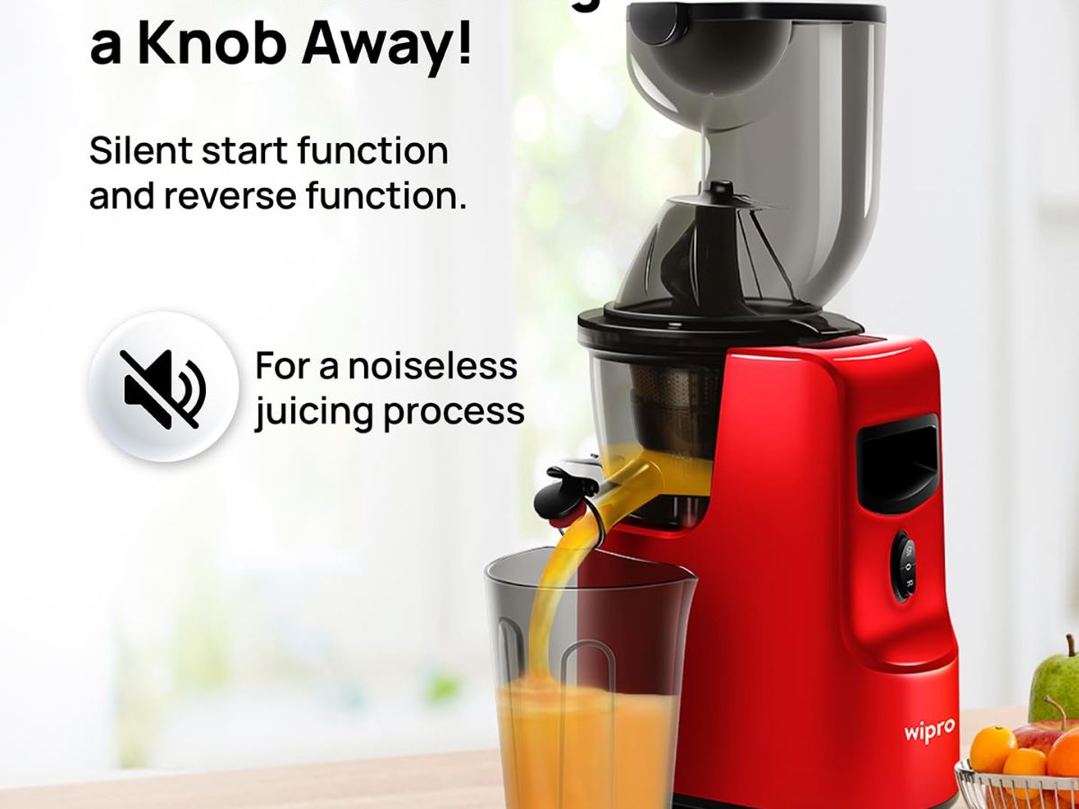 Wipro Vesta FS201 cold press juicer comes with a 240 W 100% copper DC motor for efficient juicing. It has an extra wide feeding chute of 82 mm + 45 mm for whole fruits and vegetables. The machine can also make nut milk and sorbet and includes a 400 ml bowl. The price of this juicer is around Rs 15,309