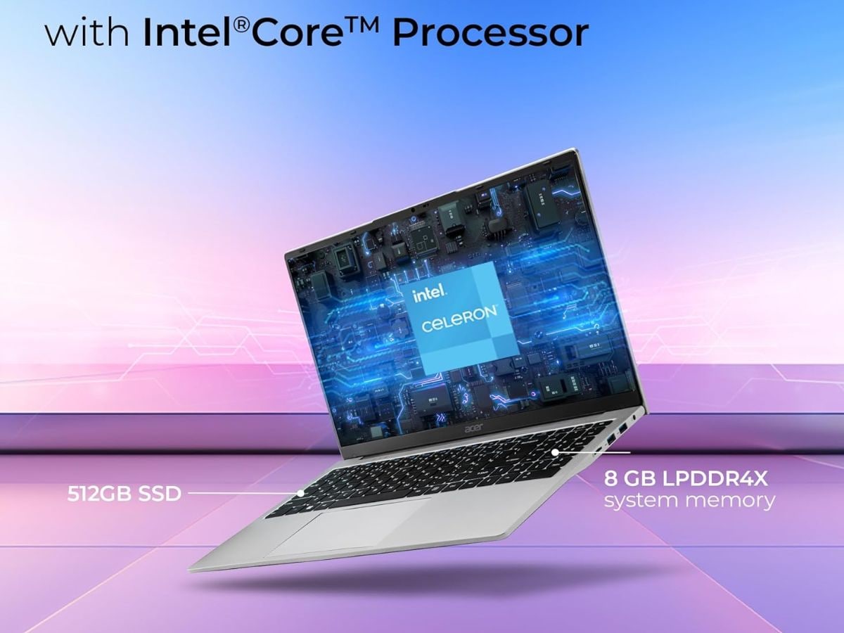Priced at Rs 22,490, the Acer SmartChoice Aspire 3 in Pure Silver offers 8GB LPDDR4X RAM and 512GB SSD storage. It runs Windows 11 Home and uses the Intel Celeron N4500 processor. The laptop has a 15.6-inch HD display, a 38WHr battery, an HD webcam, and weighs 1.5 kg. It is useful for Class 12 students attending online classes and working on basic school tasks.