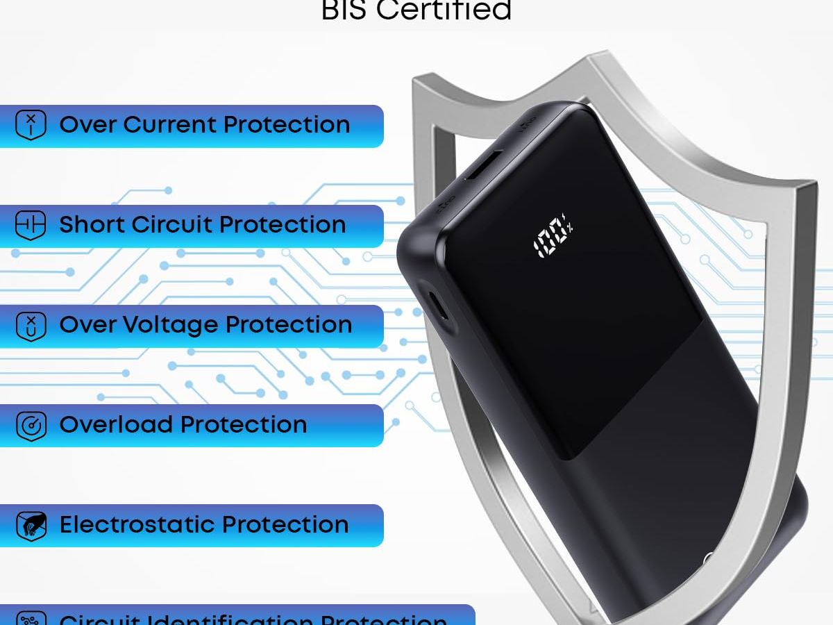 Portronics Power Shutter is a 20000mAh power bank with 15W magnetic wireless fast charging support. It comes with in-built Type C and 8-pin cables along with 22.5W Type C PD output and a bidirectional Type C port. The device also includes an LED display for battery level indication. The price of the product is Rs. 1,848 and it is available in black colour.