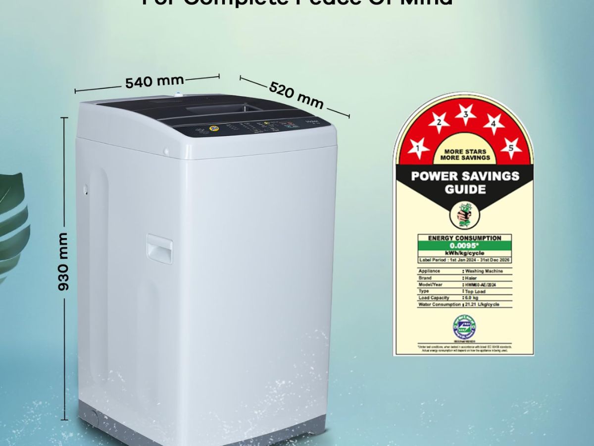 Haier 6 kg 5 Star Oceanus Wave Drum Washing Machine Fully Automatic Top Load costs Rs 12,490. It has No.of Programs - 8 Wash programs:- 8 Wash programs:- wash/Rinse/Spin/Tub Dry/Smart/Soak/Delicate/Quick, Drum / Pulsator type & Body material, Oceanus Wave Drum and Near Zero Pressure.