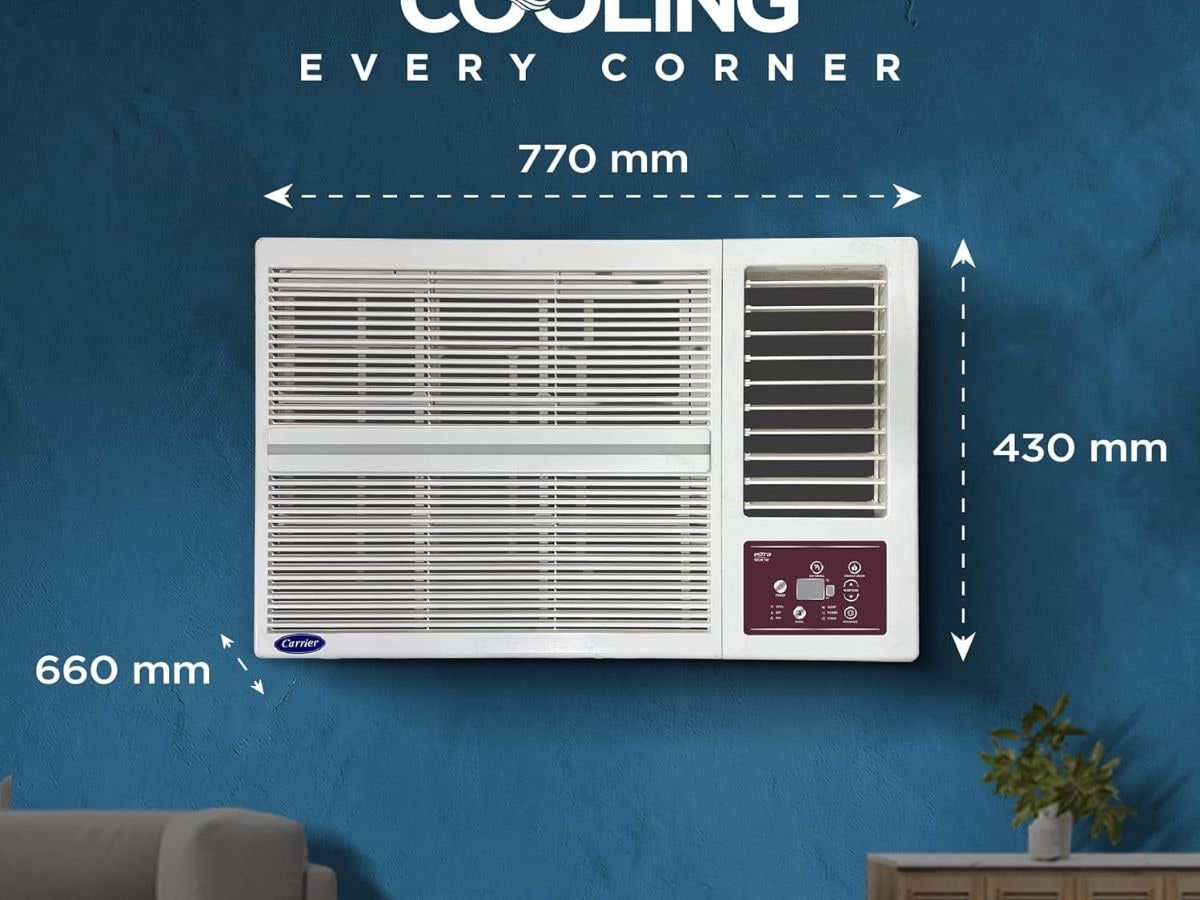 Carrier 1.5 Ton 3 Star Inverter Window AC comes with a copper condenser for reliable cooling and durability. It features turbo mode for faster cooling and an energy saver mode to reduce power use. The AC also includes a dry function, auto timer, and dust filter for better air quality. Price: Rs 34,990.