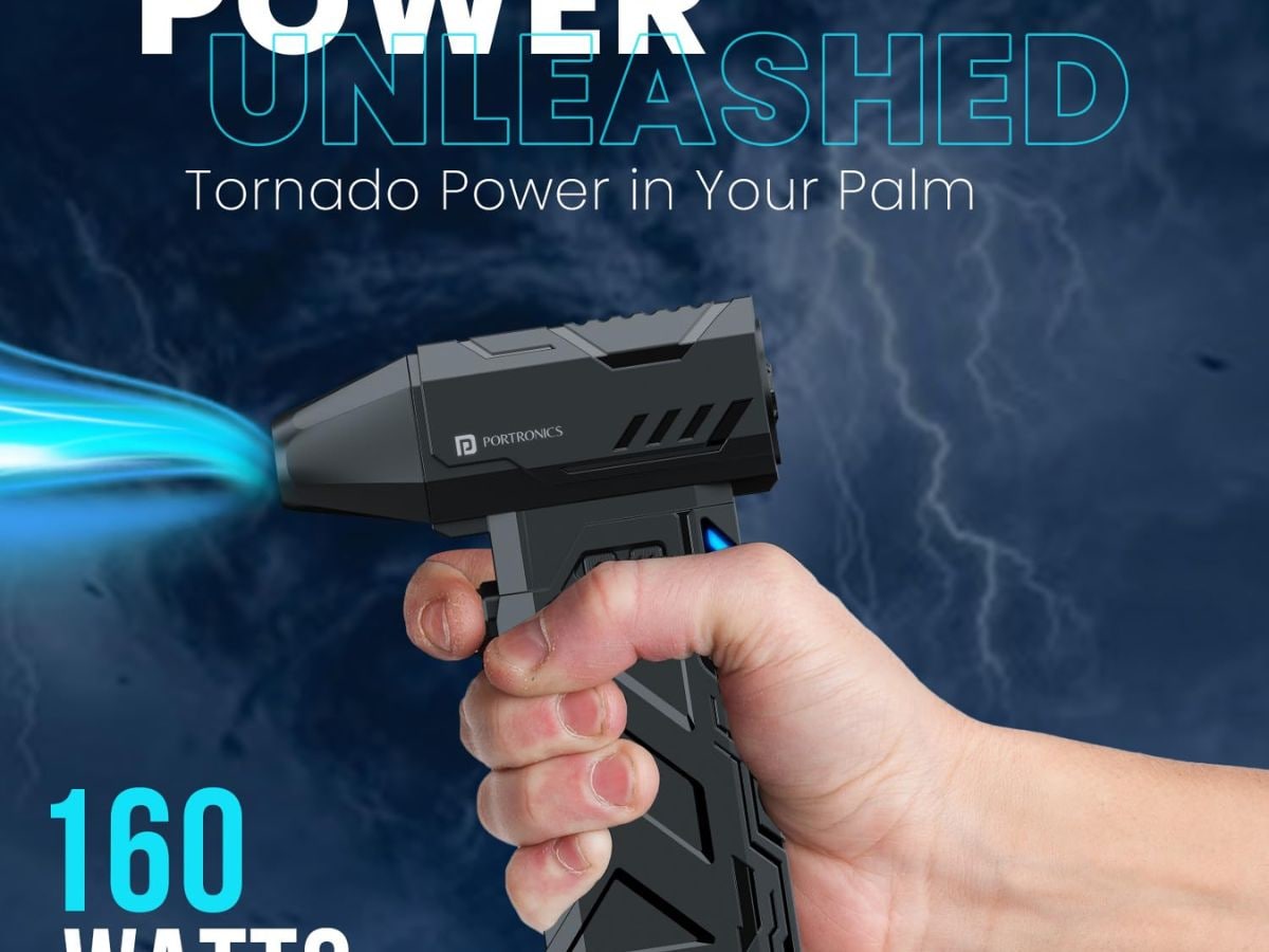 Portronics Tornado Mini Handheld Air Duster is designed for cleaning computers, cars, and home appliances. It is a cordless and compact device with adjustable speed settings and supports rechargeable Type-C charging. The air duster delivers high-speed airflow up to 130000 RPM for effective cleaning. The price of the Portronics Tornado Air Duster is Rs 2,149.