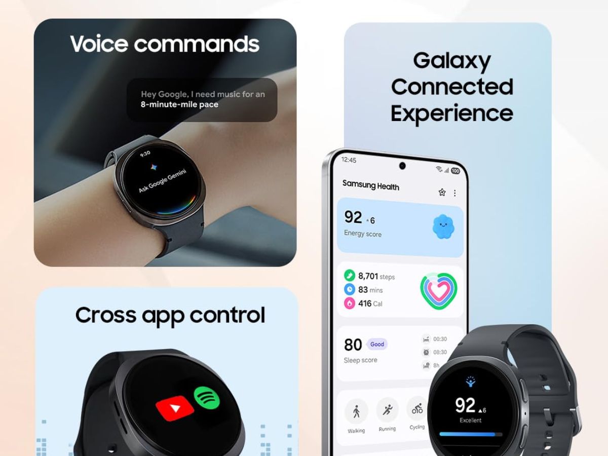 The Samsung Galaxy Watch8 (44mm, LTE) features a Super AMOLED display with up to 3000 nits brightness. It is powered by a 3nm processor that delivers up to three times faster performance and supports Galaxy AI for advanced health and fitness tracking. The smartwatch also includes Gemini on Watch and comes in a Graphite colour. Price in India is Rs. 36,990.