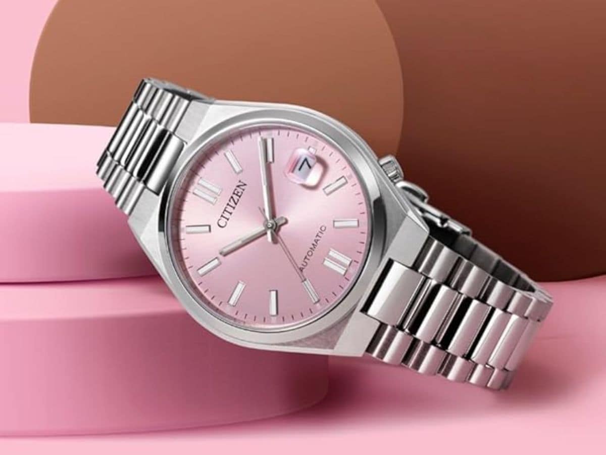The Citizen women’s analog watch features a pink dial with a 37mm stainless steel case and is priced at Rs 33,210. It is powered by the Citizen Caliber 8210 movement with a 42-hour power reserve. The watch comes with sapphire glass for scratch resistance, a polished chamfered case, and a stainless steel bracelet.