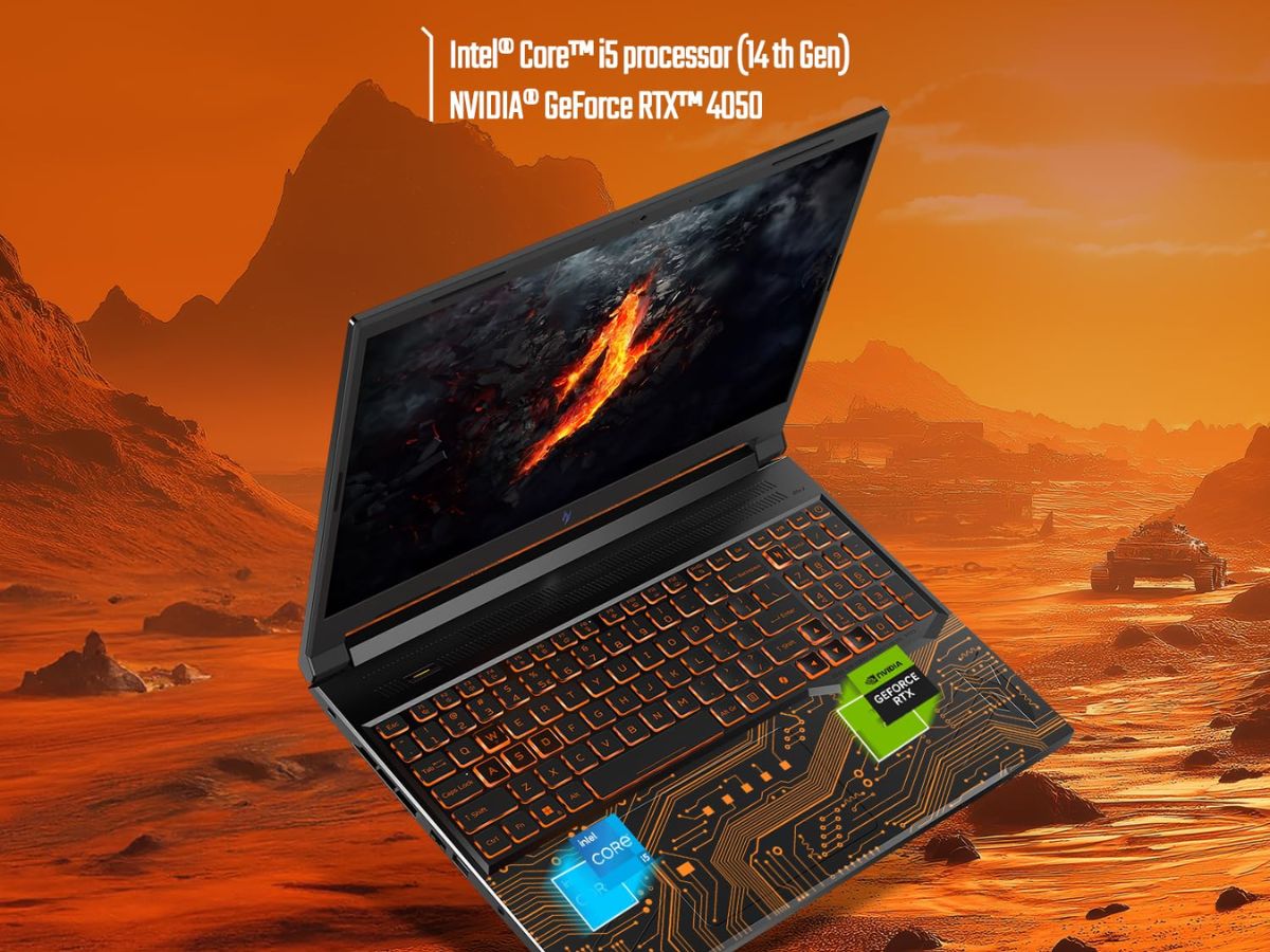 The Acer Nitro V 16, priced at Rs 84,990, is a powerful gaming laptop featuring the latest Intel Core i5 14th Gen 14450HX processor and NVIDIA RTX 4050 with 6GB GDDR6 graphics for smooth, high-performance gaming. It comes equipped with 16GB RAM and a 512GB SSD for quick multitasking and fast storage access. The 16-inch WUXGA IPS display with a 165Hz refresh rate delivers crisp visuals and fluid gameplay.