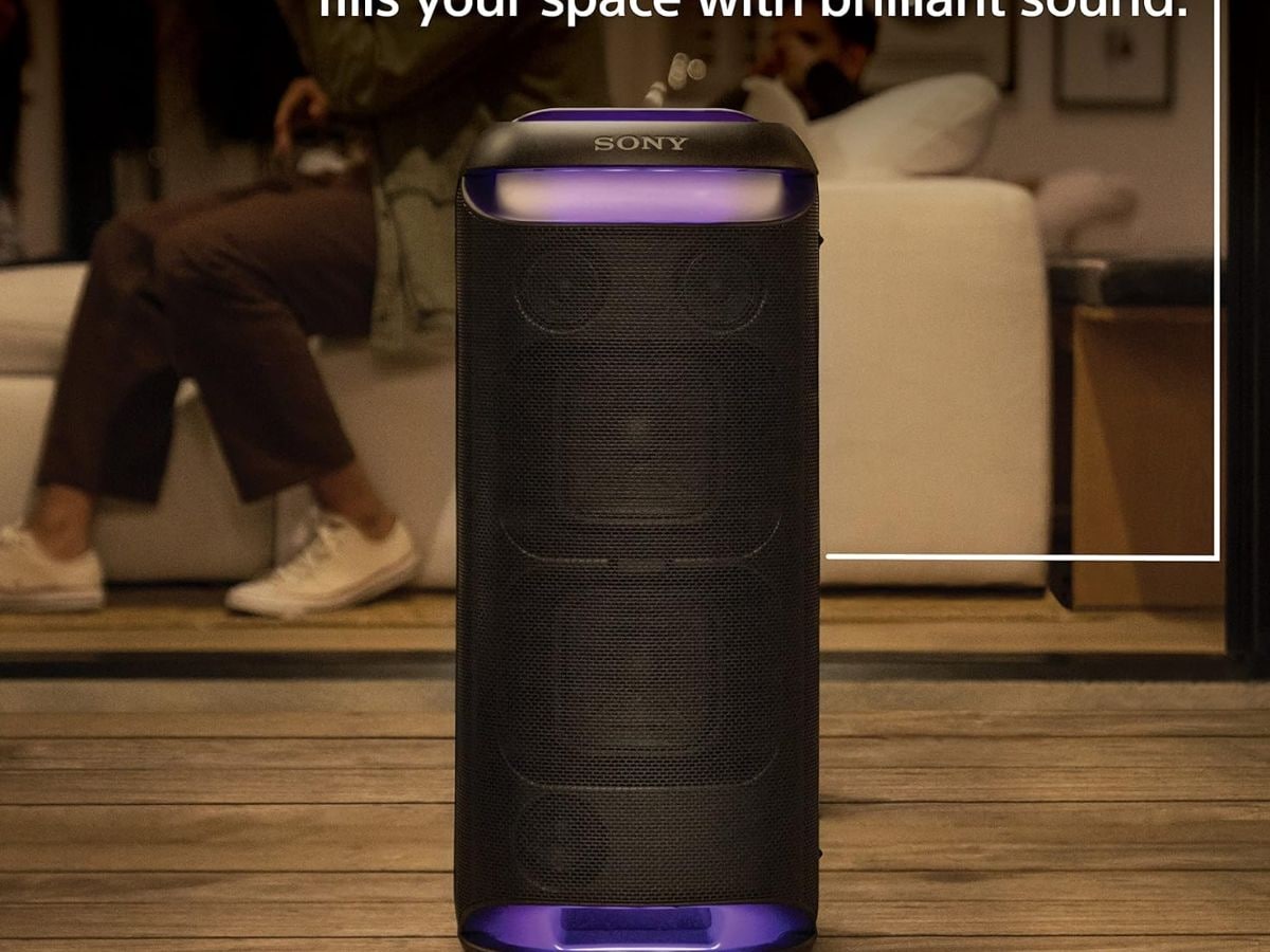 The Sony SRS-XV800 X-Series wireless portable Bluetooth party speaker is priced at Rs 35,989. It features an omnidirectional sound output and is designed for karaoke and party use. The speaker offers up to 25 hours of battery life and comes with IPX4 splash resistance. It includes a built-in handle and wheels for easy movement and supports ambient lighting to enhance the party experience.