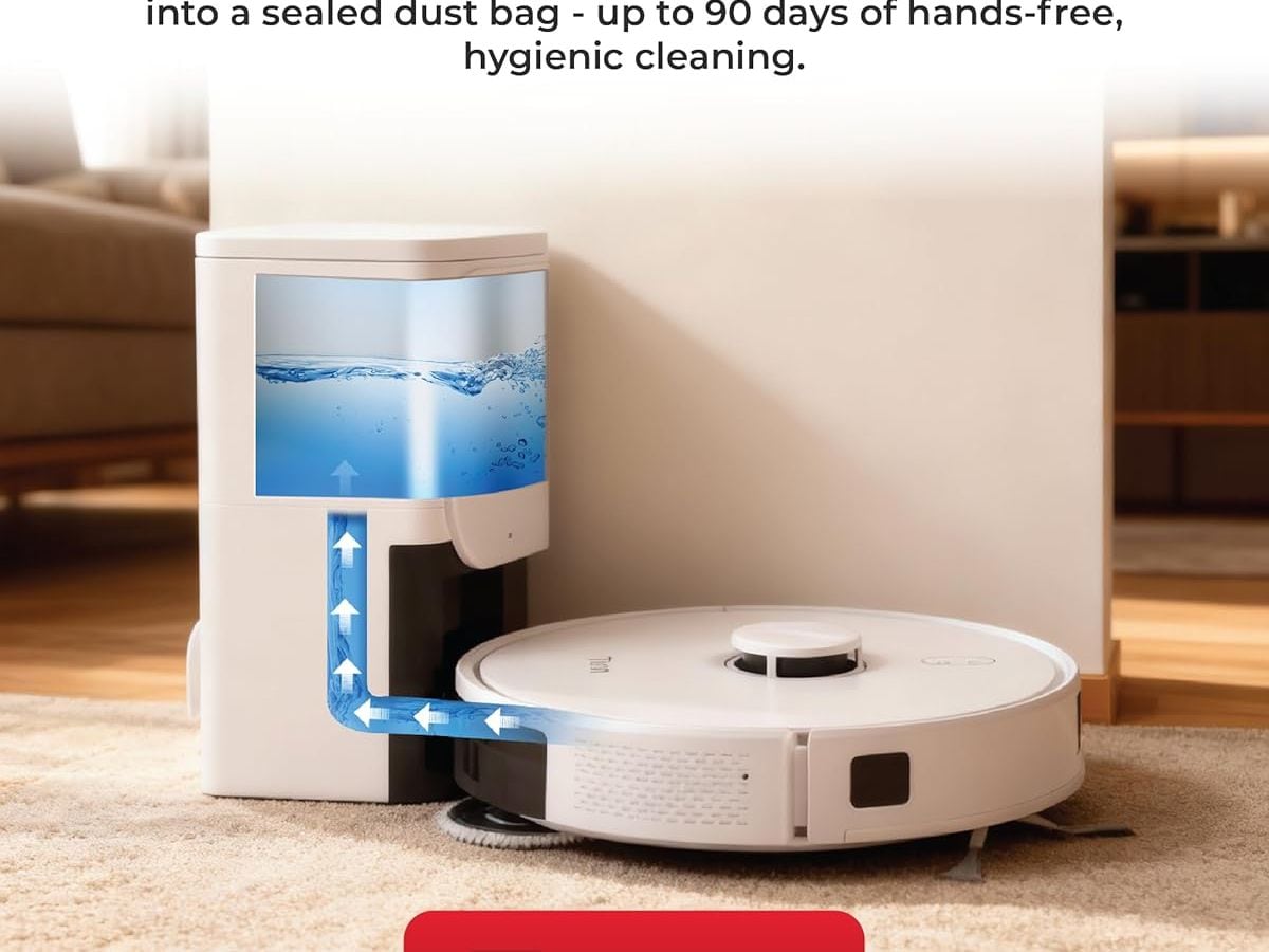 The TIRON TRV 30S Robot Vacuum Cleaner is priced at Rs 45,999. It comes with an advanced self-empty station and delivers 10,000Pa suction power. The vacuum has a 5200mAh battery and features an advanced spin mop. It uses LiDAR navigation for smart cleaning, supports edge cleaning, and can climb small obstacles. The vacuum is designed specifically for Indian homes.