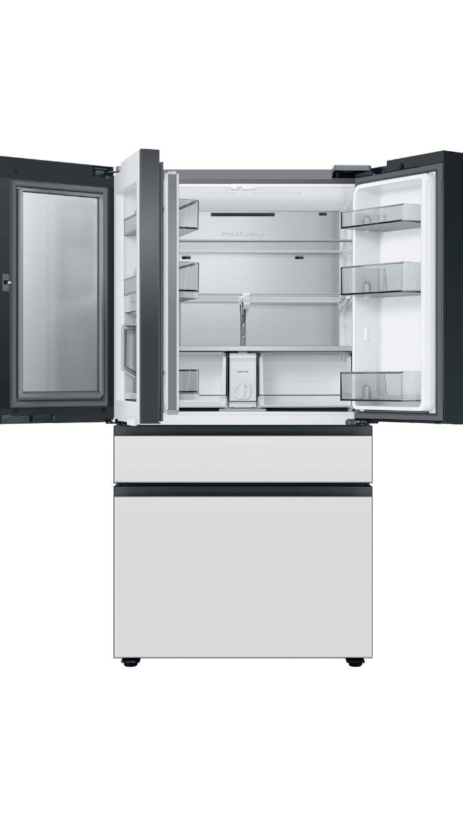 This refrigerator comes in a black design and has a total capacity of 865L. It comes with a Family Hub feature that lets users see 21.5 inches touchscreen display, a dual ice maker with cubed iced and crushed ice, and Wi-Fi connectivity with SmartThings App. It costs ₹2,99,900 in India.