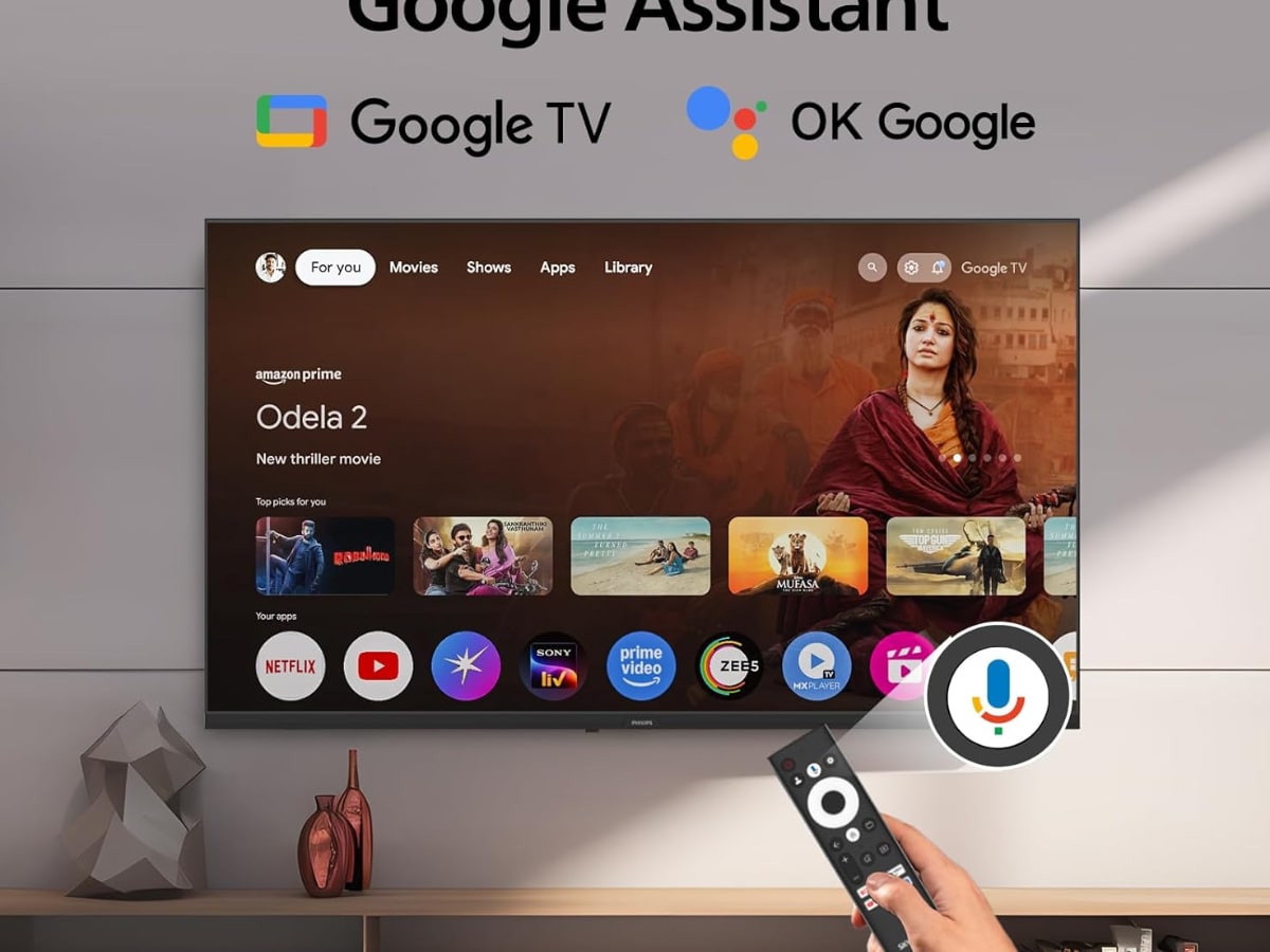 This Philips 43-inch 6100 Series Full HD Smart LED TV is priced at Rs 19999 and offers a frameless display. It runs on Google TV and supports apps like Prime Video, Netflix, Zee5 and Sony LIV. The TV includes Chromecast, Google voice assistant and dual band Wi Fi for connectivity. It also supports display mirroring for compatible devices.