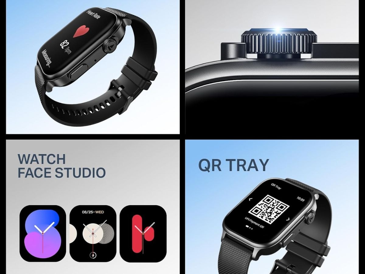 The Boult Crown Smart Watch comes with a 1.95-inch screen, Bluetooth calling, a working crown, a zinc alloy frame, 900 nits brightness, an AI voice assistant, SpO2 monitoring, and over 120 sports modes. It is priced at Rs 1,099.
