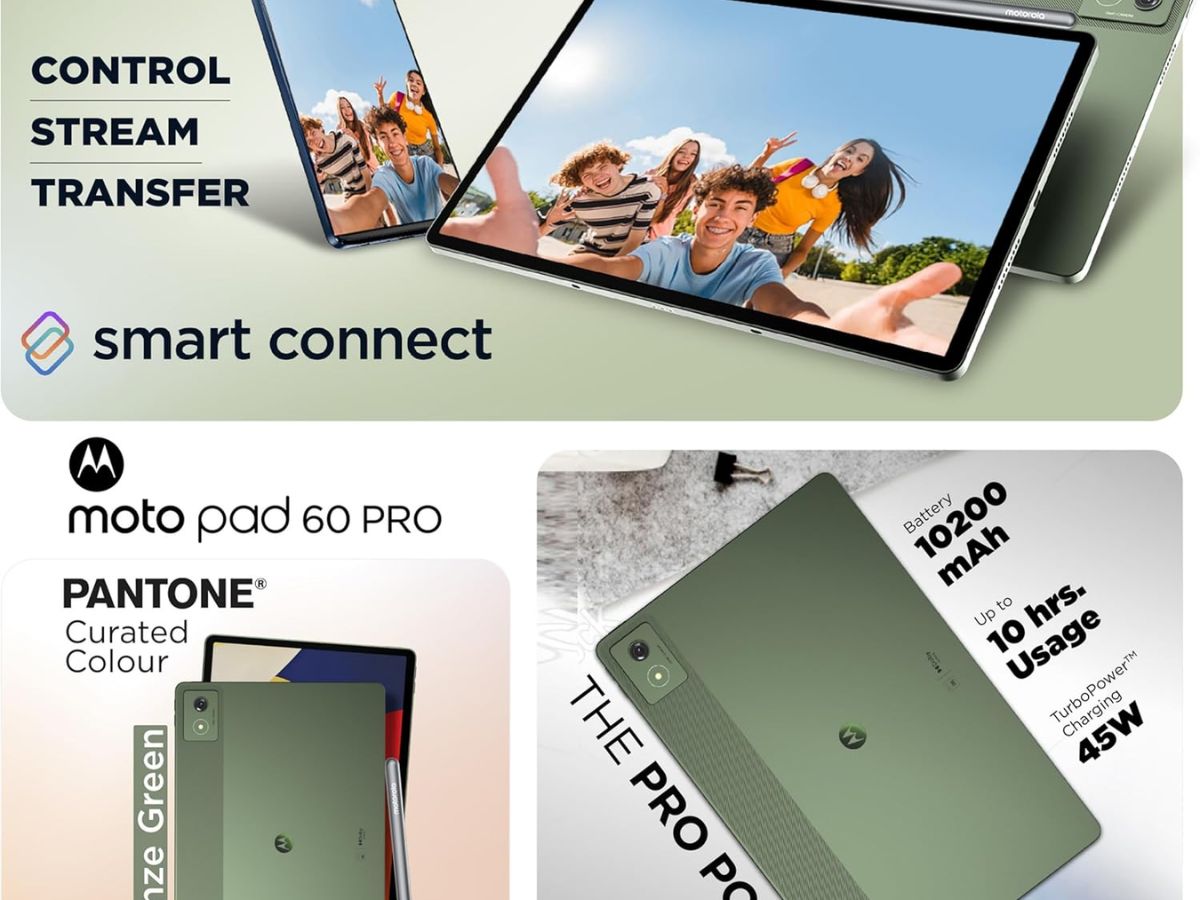 The Motorola Pad 60 Pro has an 8 GB RAM and 128 GB ROM. It features a 12.7-inch 3K LTPS display. It is powered by the MediaTek Dimensity 8300 processor. It has a 10200 mAh battery. It supports Moto Pen Pro. It is a Wi-Fi only tablet running on Android 14. The price is Rs 31,890.