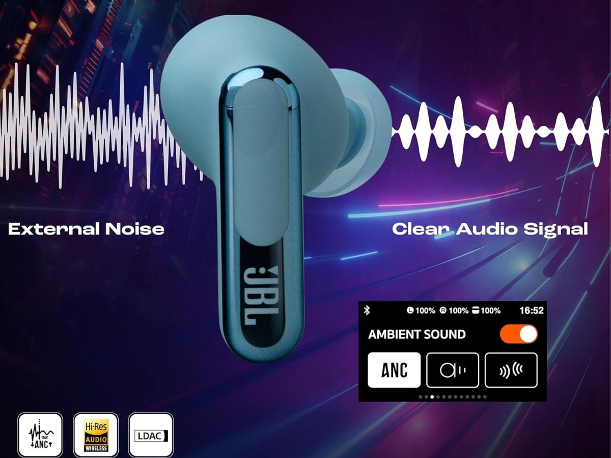 The JBL Live Beam 3 TWS is priced at Rs 12,999 in India. It supports Hi-Res Audio and True Adaptive Noise Cancellation with a six-mic setup for clear calls. The earbuds offer up to 48 hours of total playback, support wireless charging, and come with a smart charging case that has a touch display. Other features include multipoint connectivity, IP55 dust and water resistance, the JBL Headphones app, and Personi-Fi 3.0 support.