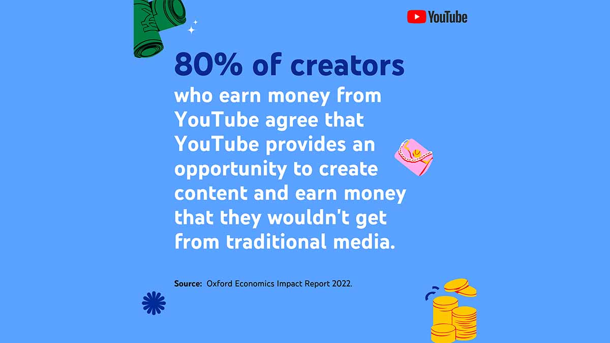 Lastly, 80 percent of creators agreed that YouTube provided better opportunities to create content and earn money.