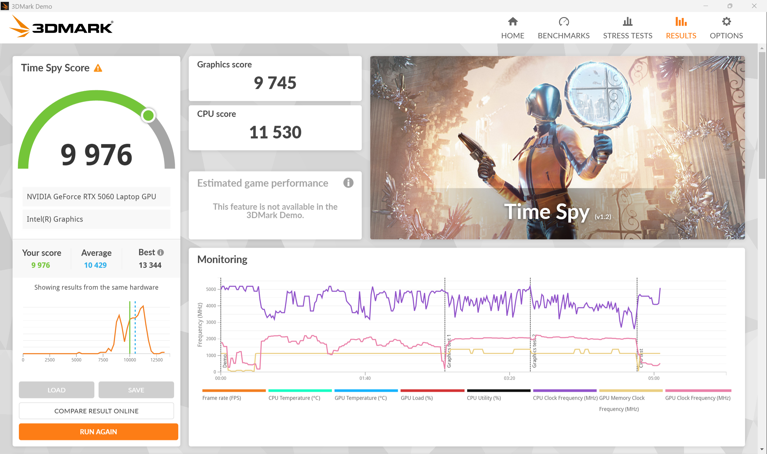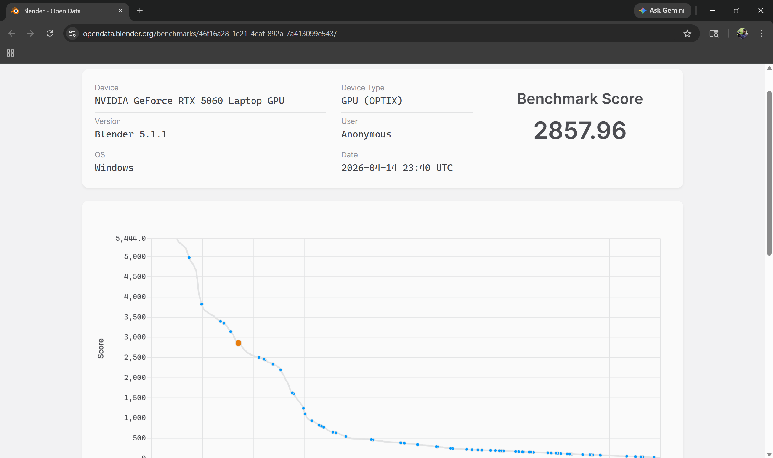 Additional benchmarks include Blender scoring 2857.96 for the GPU and Cinebench R23 at 13941 multi-core and 1901 single-core. The 3DMark Time Spy score for the RTX 5060 came out to 9976.
