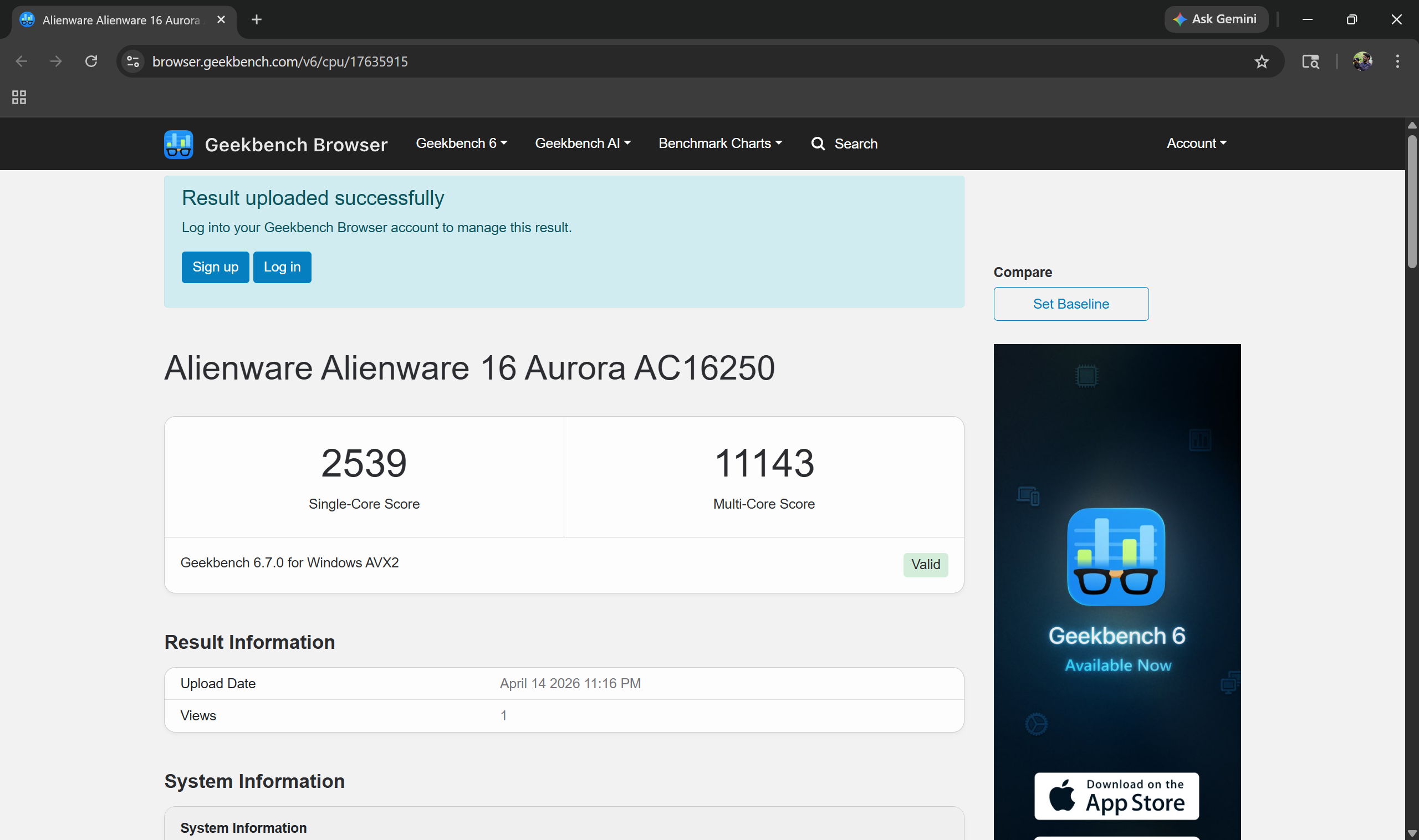 In Geekbench 6, the laptop scored 2,539 in single-core and 11,143 in multi-core. The GPU performance in OpenCL came in at 99,599, while Vulkan was close at 95,860.