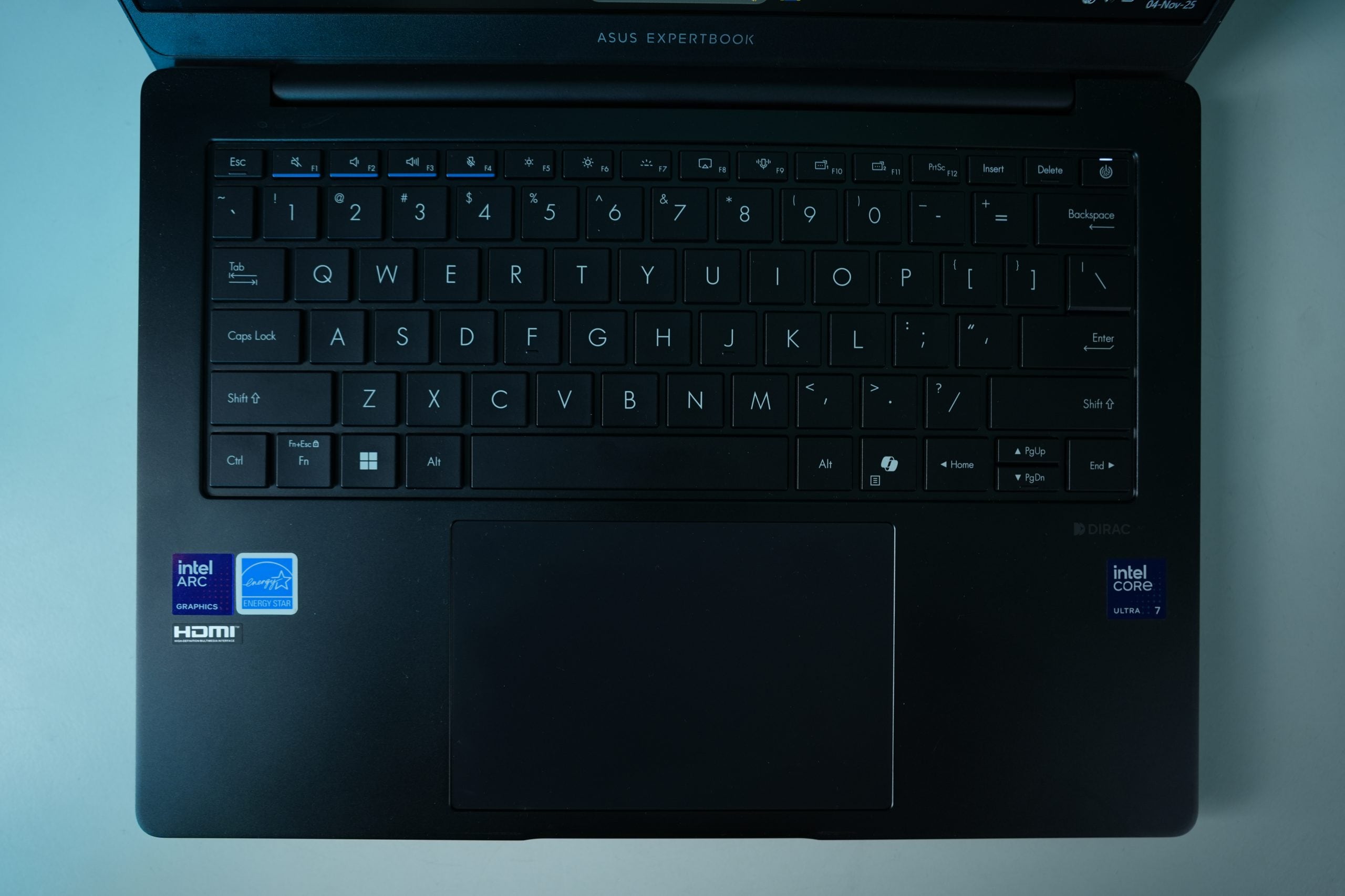 The keyboard on the Asus ExpertBook B5 is excellent and offers a very comfortable typing experience. The key travel is just right, and the metal keys provide a precise, tactile feel that elevates the overall experience. The keyboard is backlit and comes with three levels of brightness control, making it ideal for typing in dim lighting conditions.