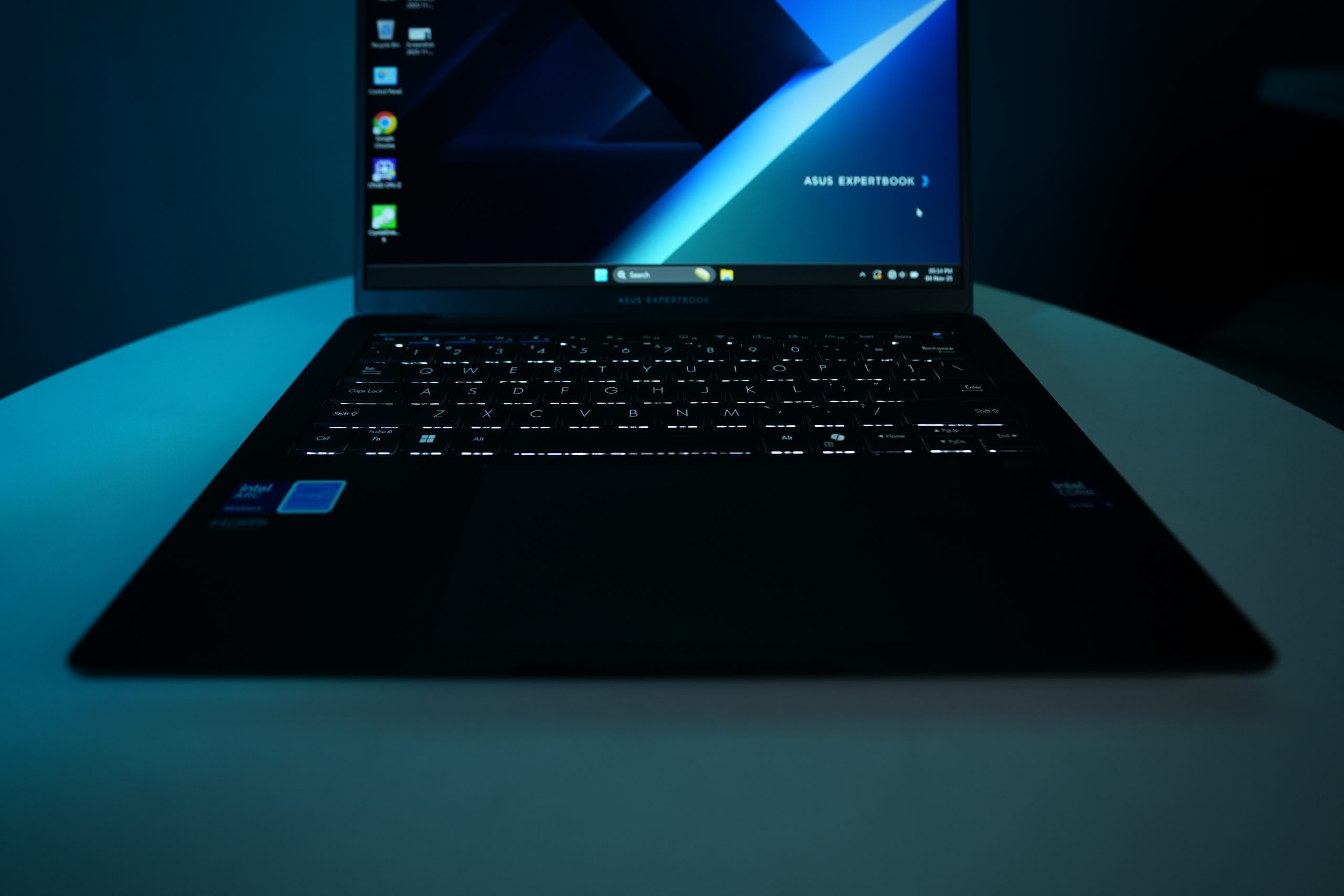 Coming to the core of the ExpertBook B5, the laptop is powered by the new Arrow Lake H processor along with Intel Arc graphics. The unit I tested was powered by the Intel Core Ultra 255H, which delivers excellent performance and shows virtually no lag in day-to-day tasks. This is paired with 32GB DDR5 RAM and a 1TB M.2 2280 NVMe PCIe 4.0 SSD. The storage speeds are also super fast when tested with CrystalDisk.