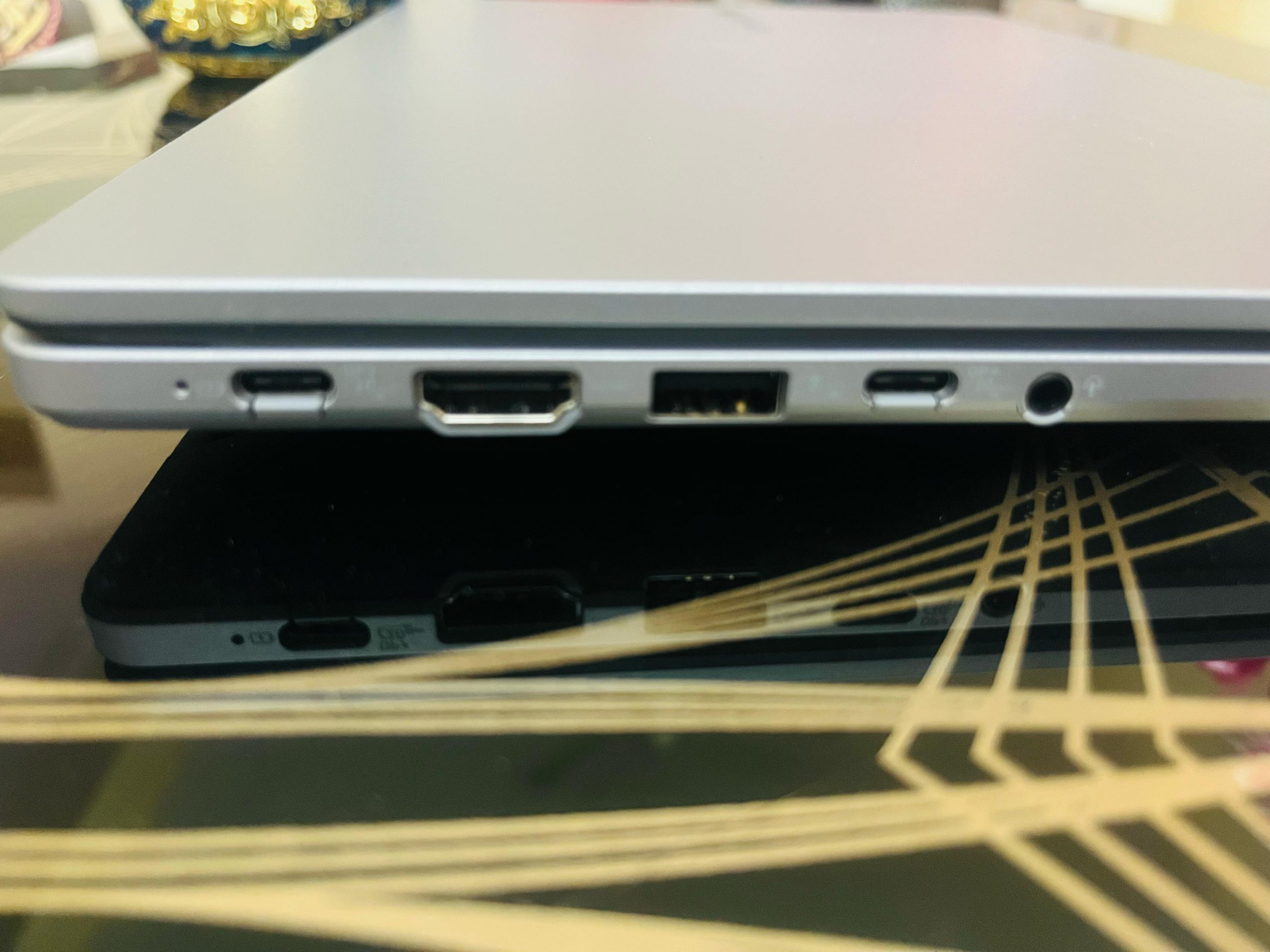 However, what I loved was the charging setup that includes a 65W Type-C charger in the box which is a win-win for me. Not just this, another cooler part is that I could charge the laptop with the power bank. Yes, you heard it right! You could also charge it with the basic USB-C ports you find on planes. I haven’t flown recently, but I did test it via my Anker power bank and it worked without a hiccup.