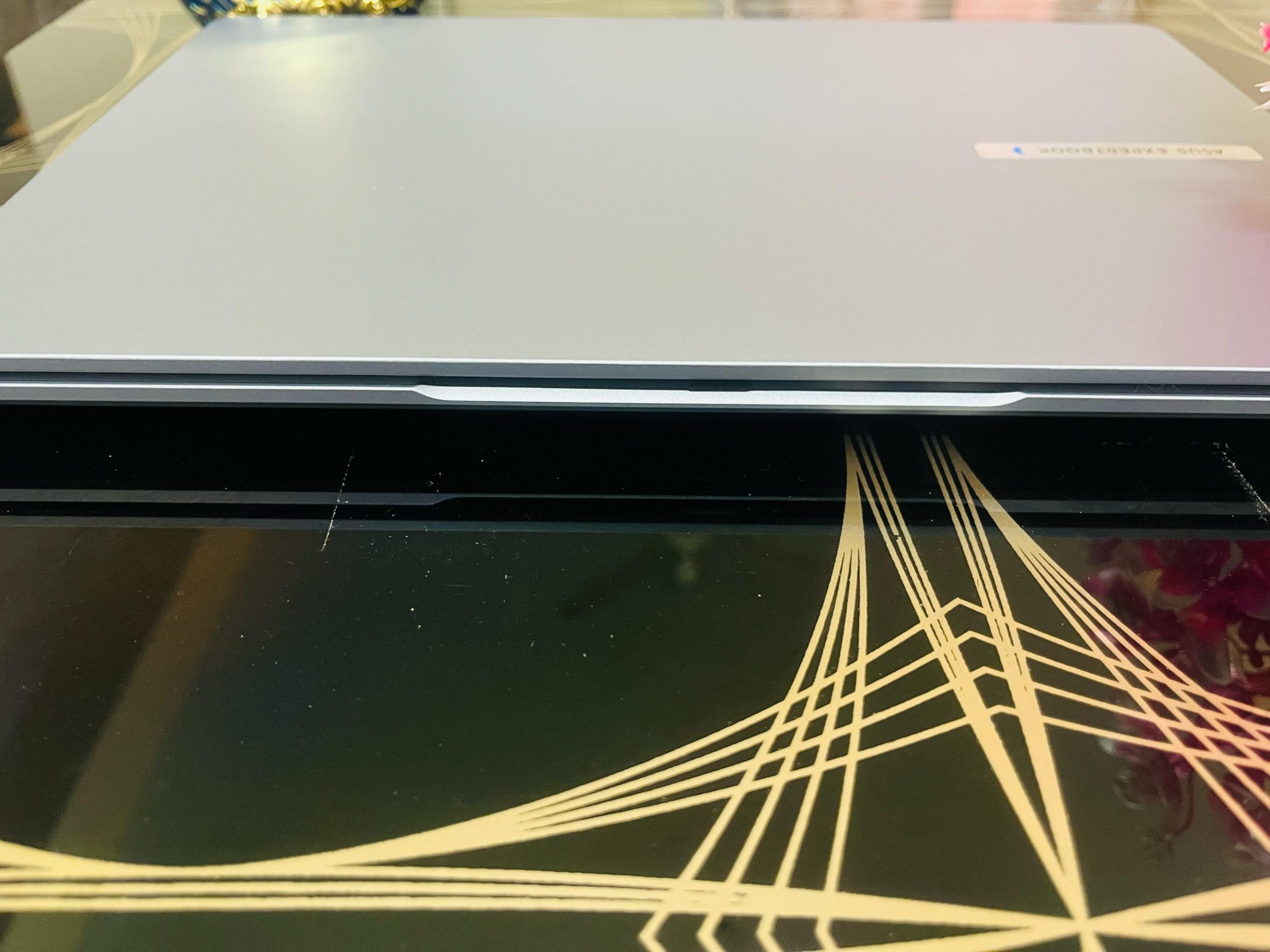 The version that I got for the review comes in a Misty Grey color along with a soft matte finish. This color combination easily hides the greasy fingerprints which is a small but essential win for me. The laptop comes with a tiny metal plate with the ExpertBook logo on the lid and another subtle branding detail below the screen. The body is mostly plastic, but as per company there’s a reinforced metal frame underneath for extra strength.