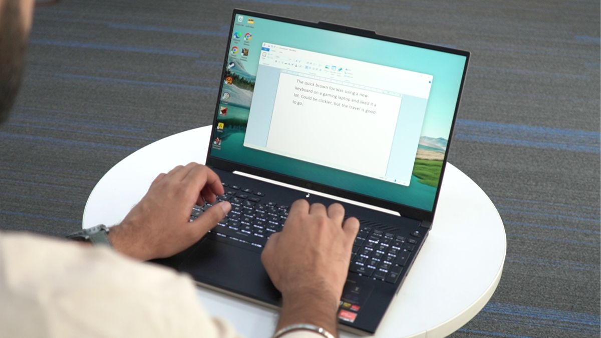 The big chassis game continues with my "smaller laptops are better" concept shattering as I type on the A16's keyboard. It has no fancy bells and whistles, but it is a simple, well-spaced keyboard. You get 1.7mm key travel, 3 steps of brightness adjustment, and a dedicated number pad.