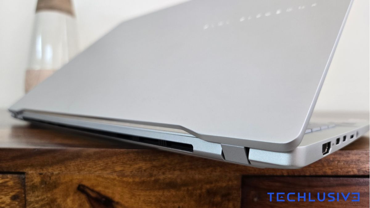 Coming to the hinge, you have a 180-degree form factor, which is nice. However, at this price, I’d want a 360-degree hinge with a touchscreen. This isn’t a big ask at 1.25 lakh rupees, and a 360-degree form factor would also allow for a better gaming experience on this machine.
