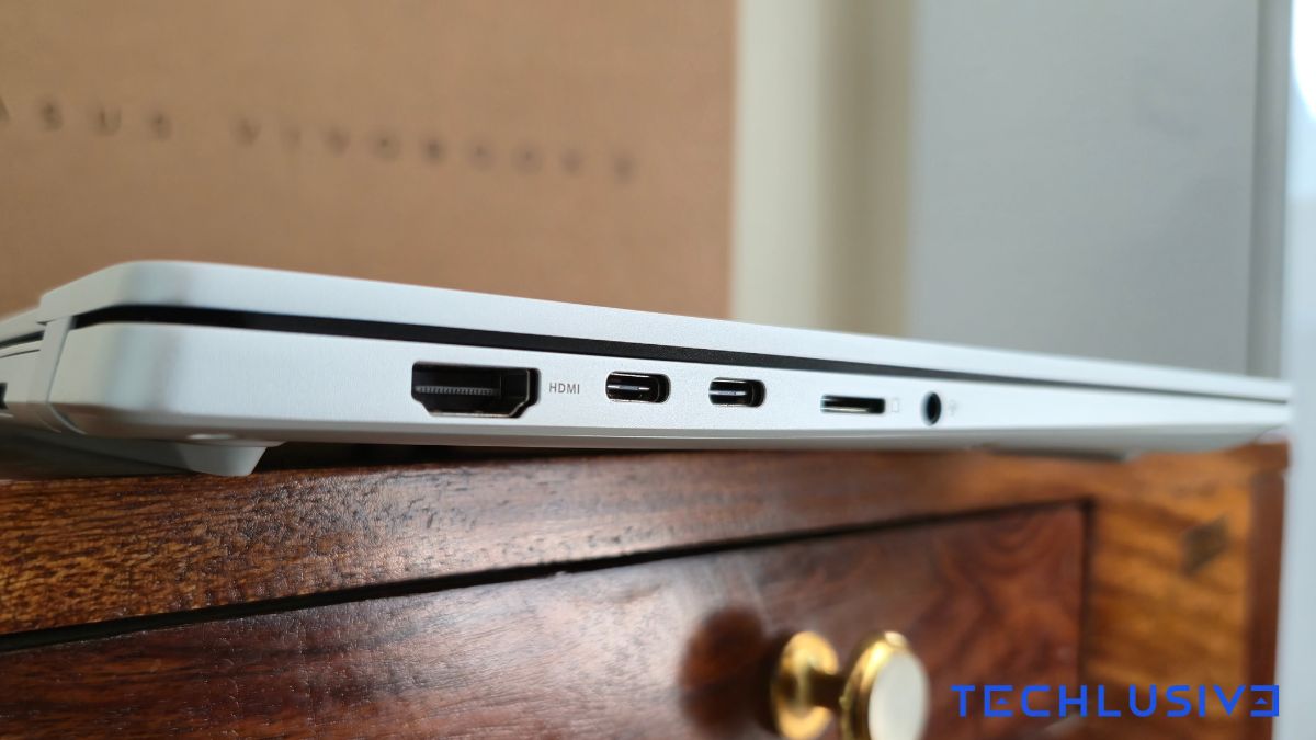 It shares the same military-grade tough chassis as the Intel Vivobook, only lighter. The laptop has a metal build, a 180-degree hinge, and good weight distribution so it feels lighter in your hands or a backpack. It also packs 2 USB-A ports, 2 USB-C ports, an HDMI port, a microSD card reader, and a headphone jack. Also Read: CES 2026: ASUS Gives First Real Look At Wi-Fi 8 With ROG NeoCore Router