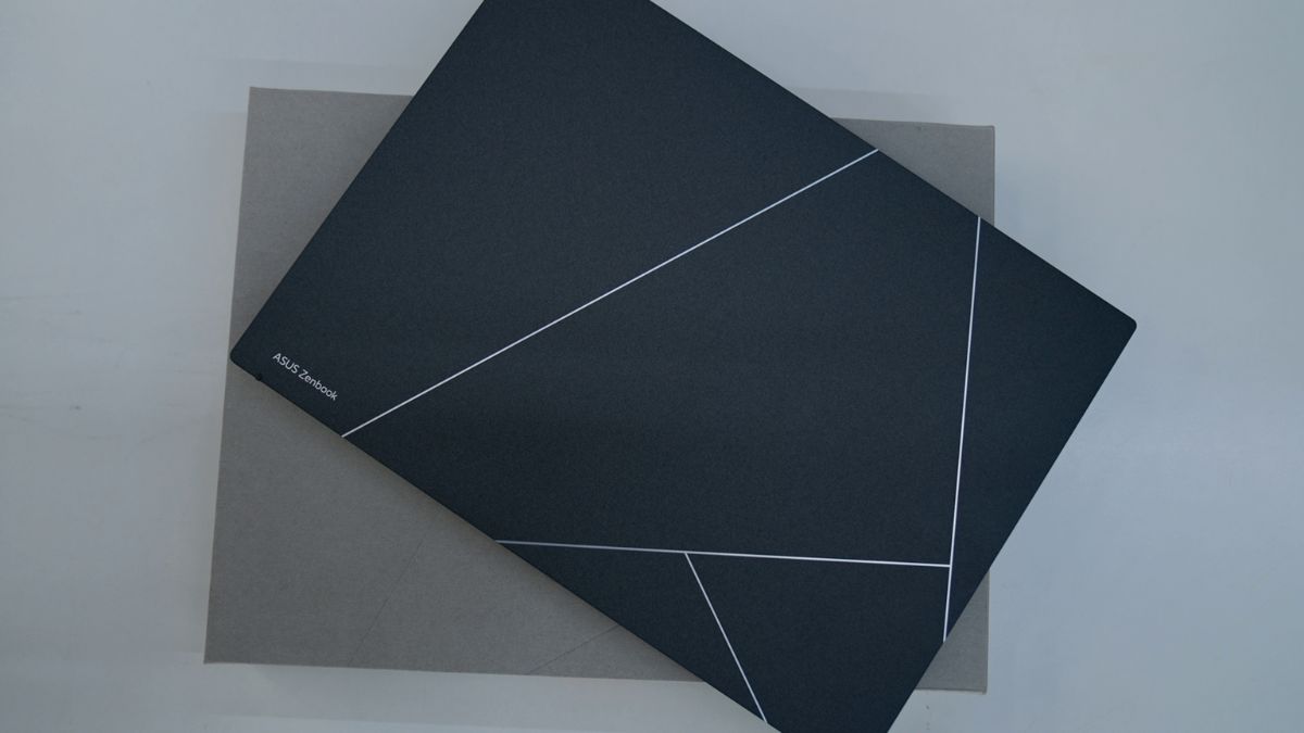 The ASUS Zenbook S 13 OLED has a stone-like finish on the lid, which is unique to this laptop’s basalt grey color.