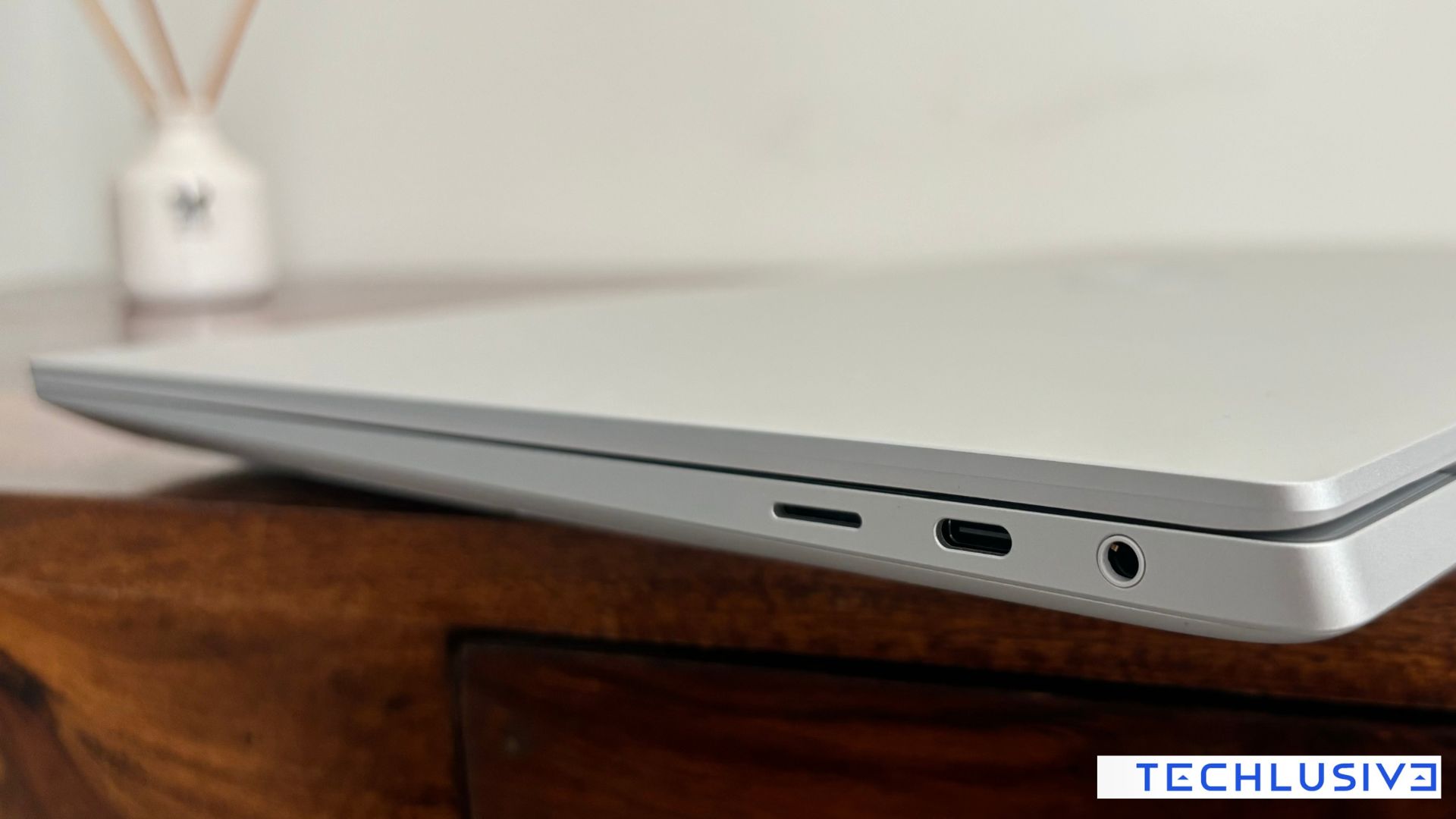 There’s no USB-A port or HDMI port, but Dell gives a USB-C to USB-A converter to fit your pen drives. Moreover, there’s a microSD card reader, but no slot for a proper SD card that many professionals use. This clean design is also affected by the weight of this thing. It is over 2 KG heavy, and if you decide to carry it in a backpack, you’ll feel the weight.