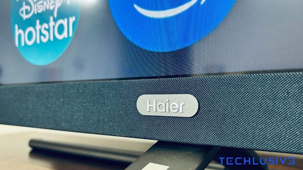 Haier may not have spent much time deciding on a fancy name for this range, but they did put effort into the design. It has a clean, premium finish with slim bezels. The edges are matte-metallic, and the front-firing speakers have a synthetic fabric finish.