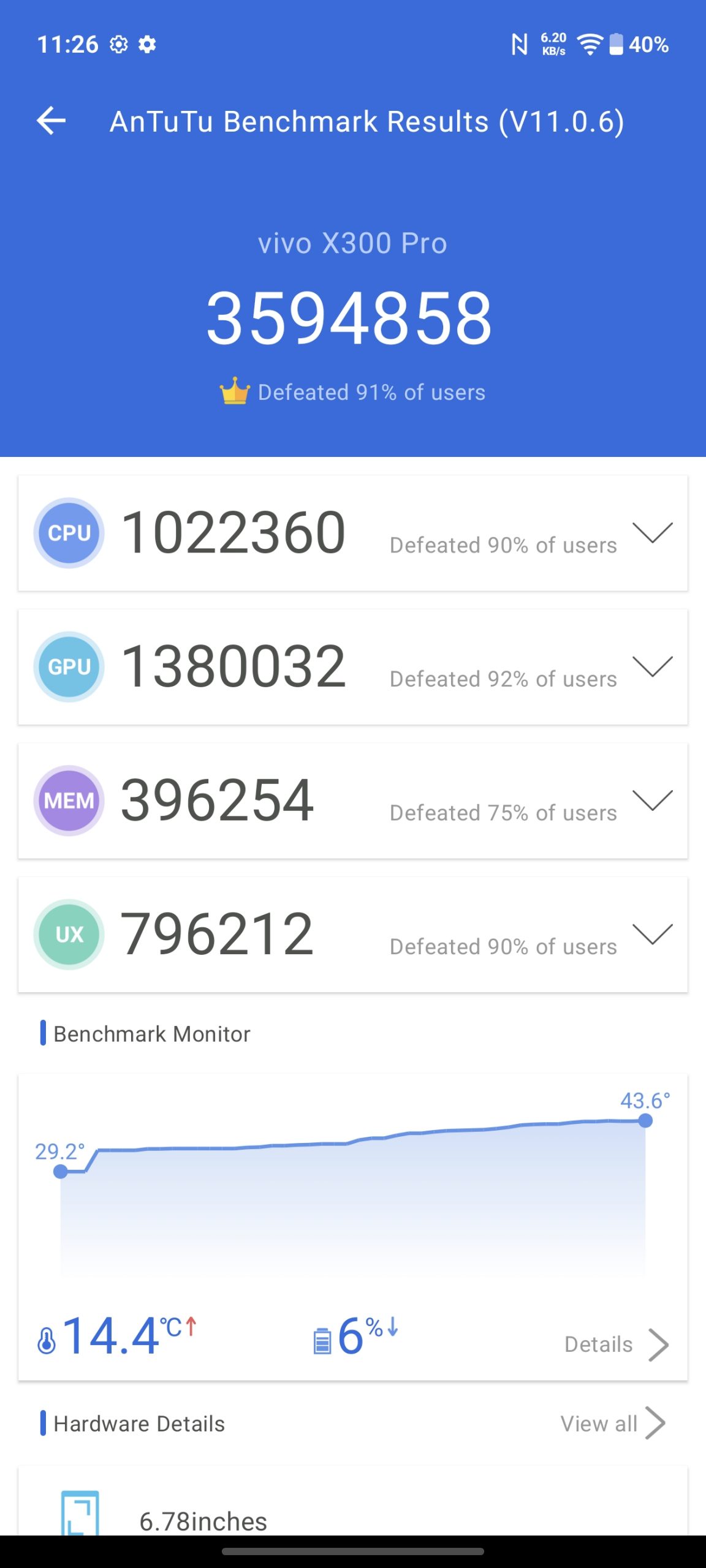 Vivo X300 Pro gives tough competition to other flagships of 2025 in terms of benchmark scores. It did, however, show some signs of heating during my testing. That said, the device can handle all tasks with ease in daily usage. The flagship chipset delivers great performance whether you are multitasking, browsing, or gaming.