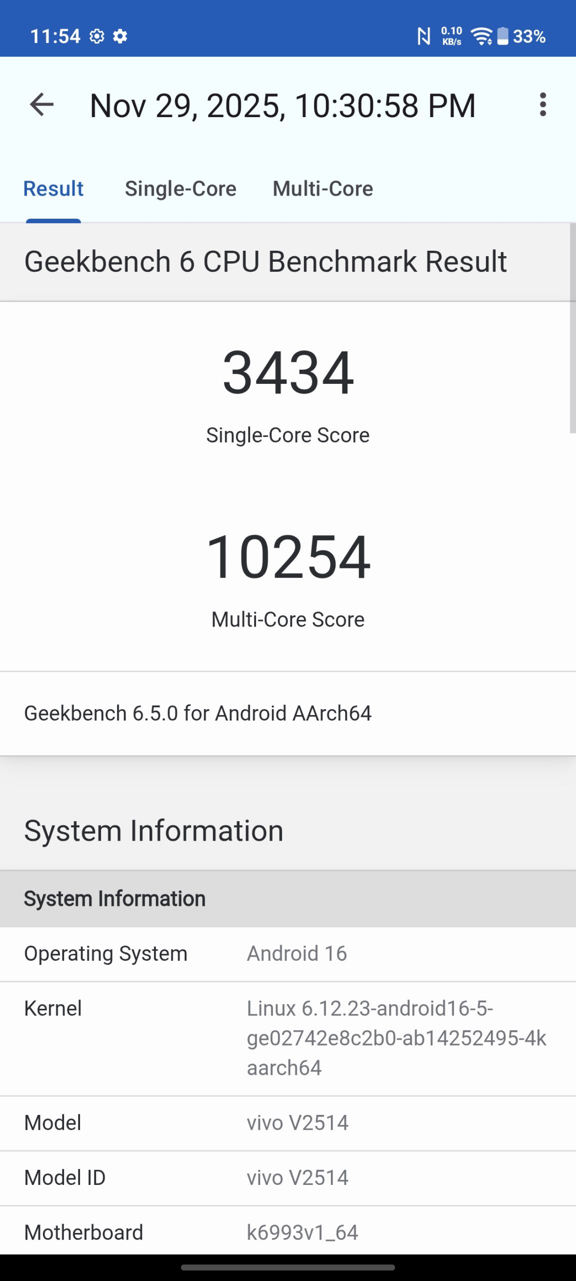 In AnTuTu benchmark, the X300 Pro managed to score 3,594,858 points, which fell short in comparison to the Snapdragon 8 Elite Gen 5-powered OnePlus 15’s 3,701,262 score. The Geekbench 6.5 benchmark showed an output of 3,434 in single-core test and 10,254 in multi-core test. Though the scores are higher than its compact sibling, the Vivo X300, it still lags behind the OnePlus 15’s scores of 3,642 and 11,061 in the respective testing. In CPU throttling test, the X300 Pro’s performance dropped down to 70% of its peak – it may not affect the overall performance but is still a concern given its flagship tag.