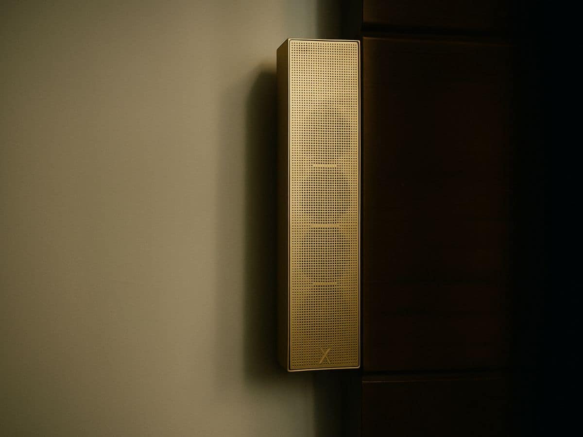 Talking about some specifications, the Xscace Cane packs four custom woofers inside its compact frame. These woofers come with an impedance of 8 ohms and a sensitivity of 94 ± 3 dB, delivering frequencies between 150 Hz and 20 kHz. The speakers have a 50W output which may not sound like much on paper, but the sound they produce can easily fill up a large room. The speaker also comes in multiple colors like Matte Champagne, Anthracite, and White, with custom colours and finishes available upon request. They also ship with a corner mount accessory for mounting, but thanks to the small form factor, they’re perfect to place on a TV unit or even above a small cabinet.