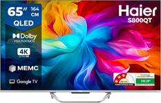 The Haier 65S800QT-P 65 inch UHD Smart QLED TV is a 65-inch, LED display 4K, Smart TV featuring a 4K, 3840 x 2160 Pixels resolution. with a 16:9 aspect ratio. It HDR (High Dynamic Range) MEMC, enhanced brightness and contrast. Connectivity options include 4 HDMI ports, 2 USB ports, Wi-Fi and Bluetooth. The design features a slim profile with minimal bezels Audio Formats Supported AAC, MP3, WMA and Weight 17 kg.
