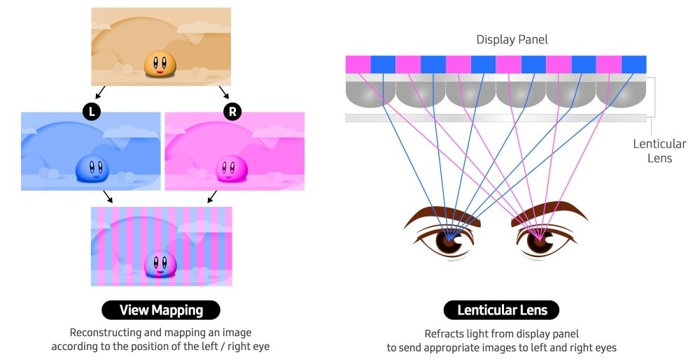 The Samsung Odyssey 3D monitor works basically on three key technologies — eye tracking, view mapping, and a lenticular lens. Sounds interesting, right? But here’s how it actually works.